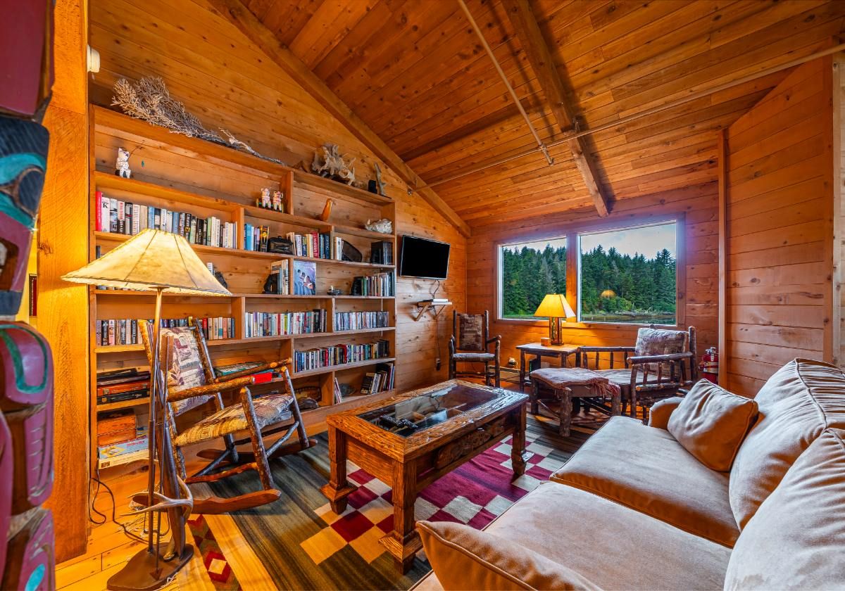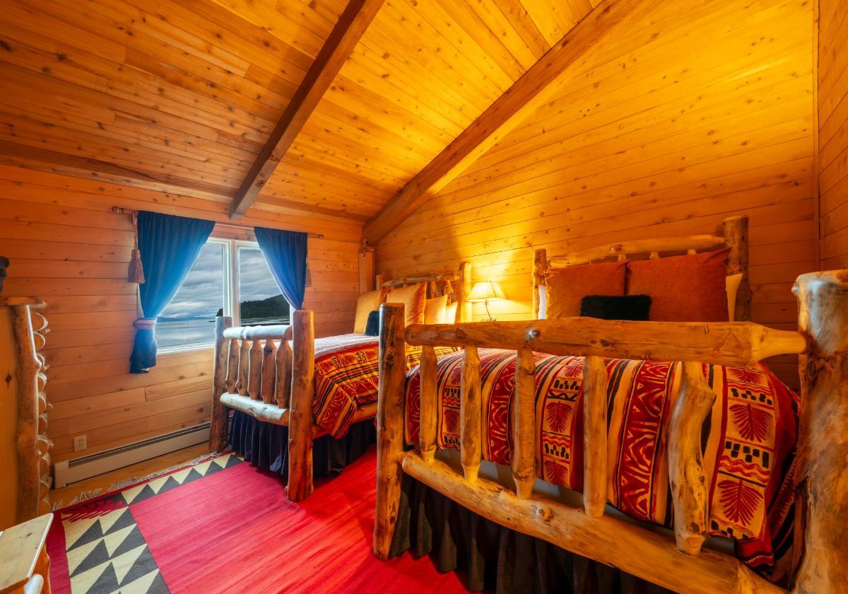 The guest rooms offer views of the inland waters and evening sunsets. The twelve individually designed rooms feature native cedar walls, lodge pole furnishings, full baths with soaking tubs and showers, handcrafted rugs, and luxury bedding.