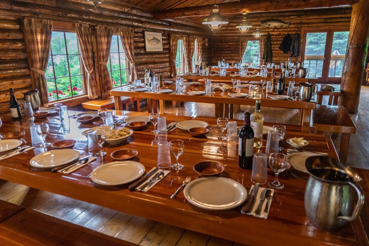 At Kulik Lodge, breakfast is served early and made to order from a set menu. A hot lunch is served buffet style at the lodge when fishing the Kulik River. If you're out on a fly out trip, sandwiches, soups, and/or chips are brought along to enjoy riverside. At Kulik Lodge, dinner is serverd family style. Each day there is a great selection of delicious food items that are passed and shared amongs the large mess hall style dining room. It's a fun atmosphere as the famly style dining bolsters a social environment among guests at the lodge. Complimentary beer, wine, cocktails and soft drinks are available at the bar.