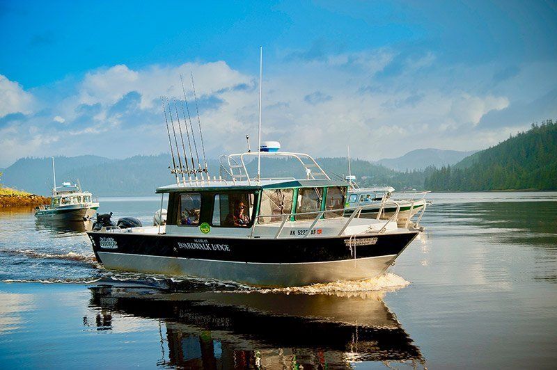 Because of the oceanfront location of the lodge on the Inside Passage, you can enjoy ocean fishing in relatively calm waters. This area is comprised of hundreds of islands, protected passages, bays and inlets; and the waters teem with fish and other aquatic life. Rarely do they fish more than 200 yards from land. The boats are 28-foot ocean cruisers. Each is equipped with a heated cabin, flushing private toilet and all required gear and tackle. The experienced captains are U.S. Coast Guard licensed, and certified in First Aid and CPR.