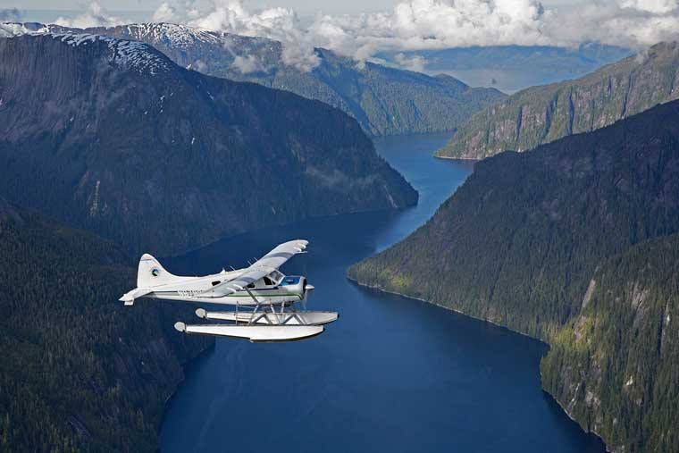 Guests traveling from “the lower 48” fly to Seattle’s SeaTac airport, take a 90-minute Alaska Airlines flight to Ketchikan, then a breathtakingly beautiful 33-minute float plane from Ketchikan to the dock at Boardwalk Lodge.