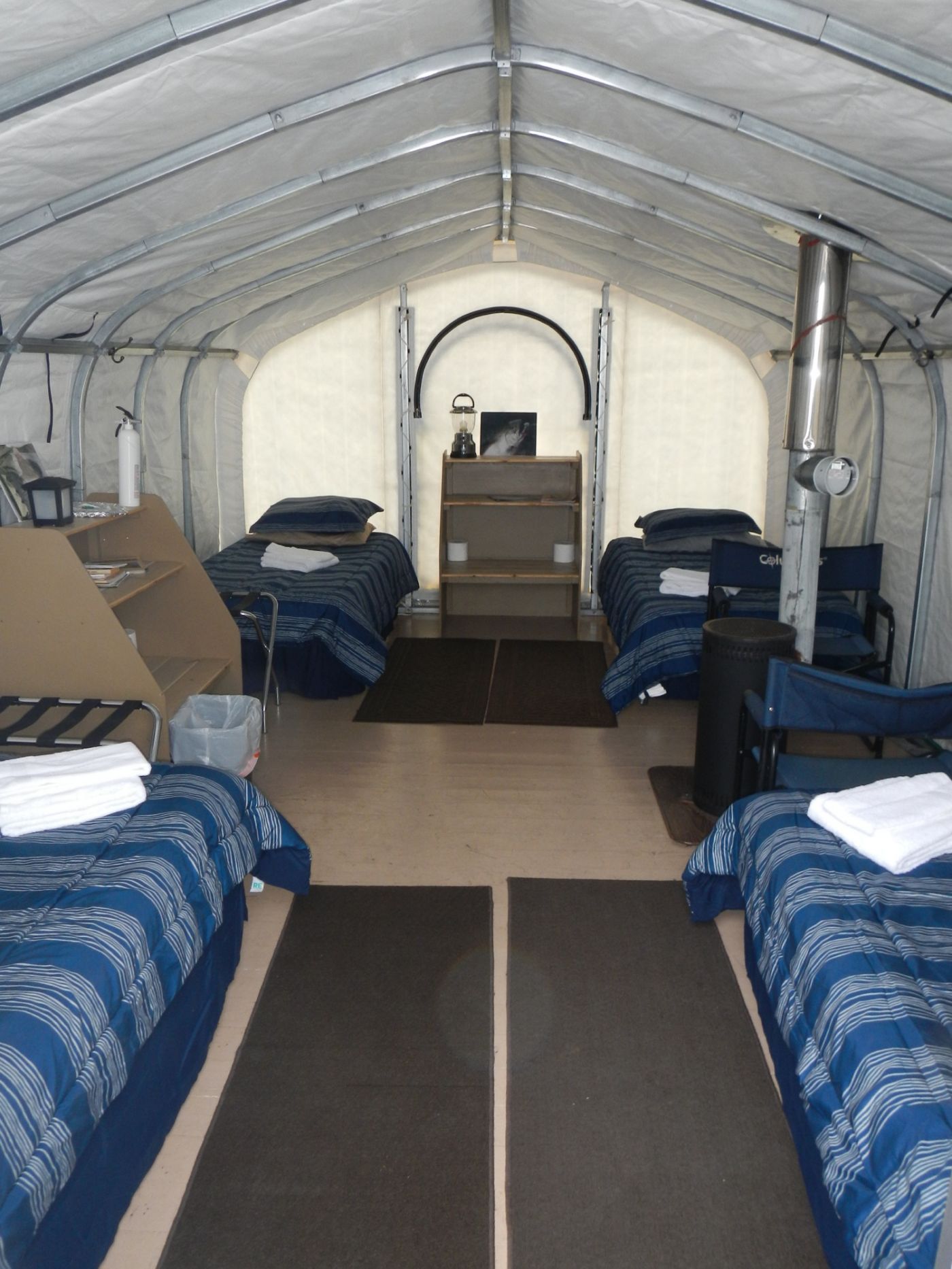Currently, both camps feature weatherport tents that sit on raised wooden platforms. These tents feature solar panel lights, hot showers, padded sleeping cots, and includes a fly-tying table. Guests sleep in sleeping bags with a liner and they can expect basic accommodations in a clean and comfortable location.