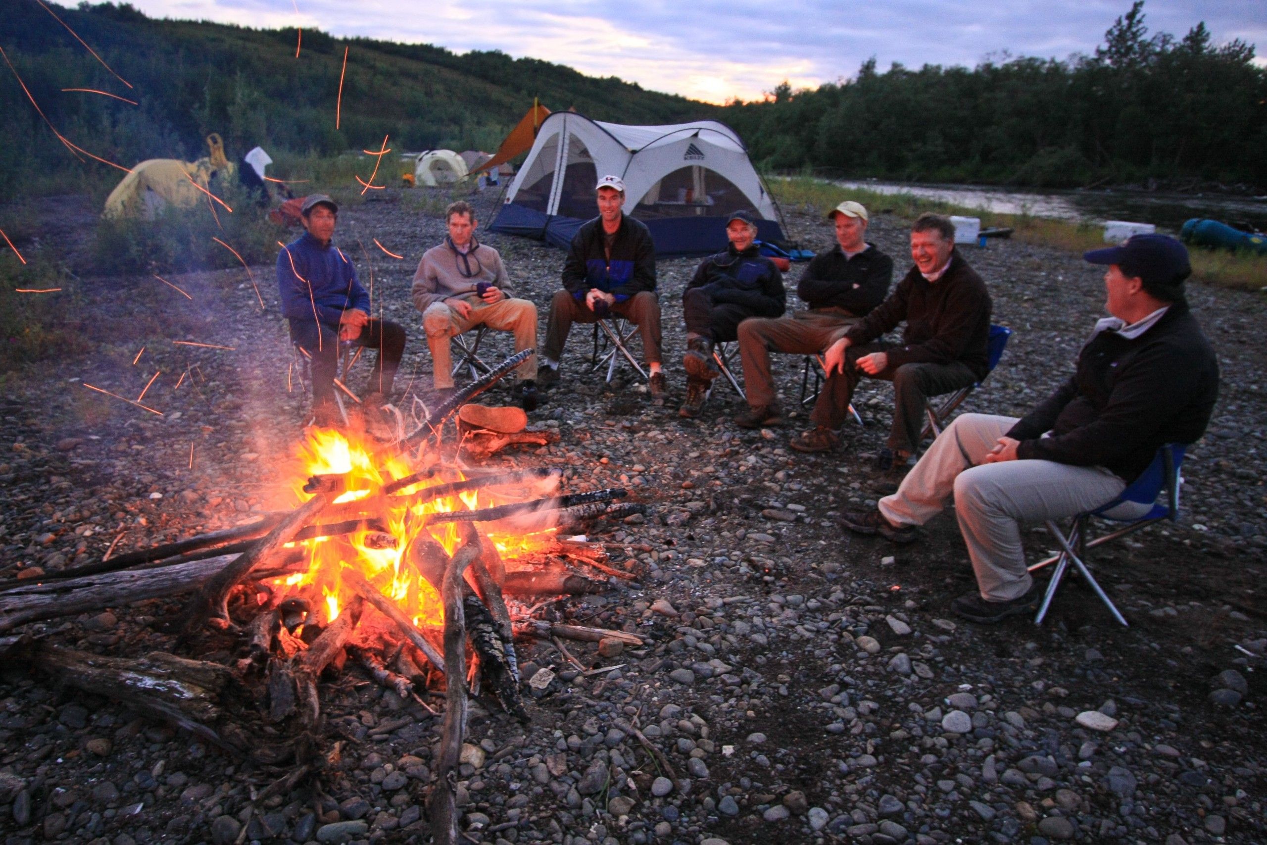 On a FRG fly fishing float trip in Alaska, they work their way down the river daily, setting up comfortable camps each evening. The guides perform all camp chores, prepare all meals and handle everything, cheerfully and efficiently. Frontier River Guides offers an unsurpassed customer service, safety awareness, knowledge of the waters, quality gear, superlative meals and most importantly: conversant, educated, good hearted and highly experienced Alaska fly fishing raft guides.