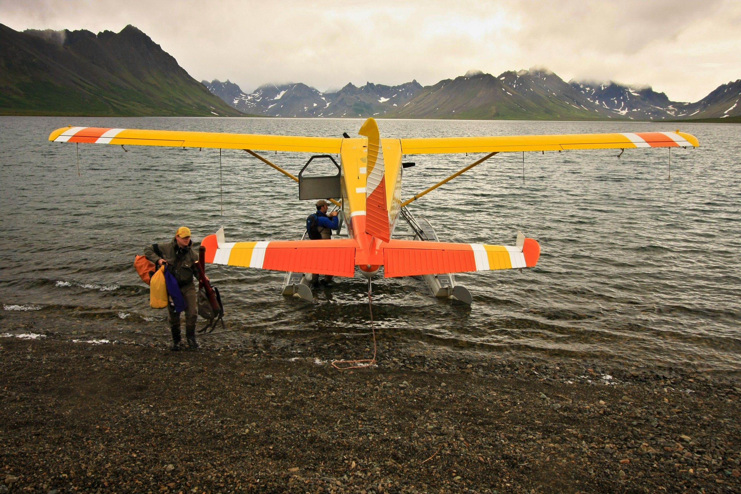 Your trip starts upon arrival into Anchorage’s Ted Stevens International Airport (ANC), where you will then take a short flight to King Salmon, Illiamna or Bethel for your air taxi flight to the river system. Frontier River Guides does not provide lodging on the night prior to or after the trip. The first day of the trip will begin with the float plane flight to the headwaters lake or to a nearby lake with a short portage to the river.